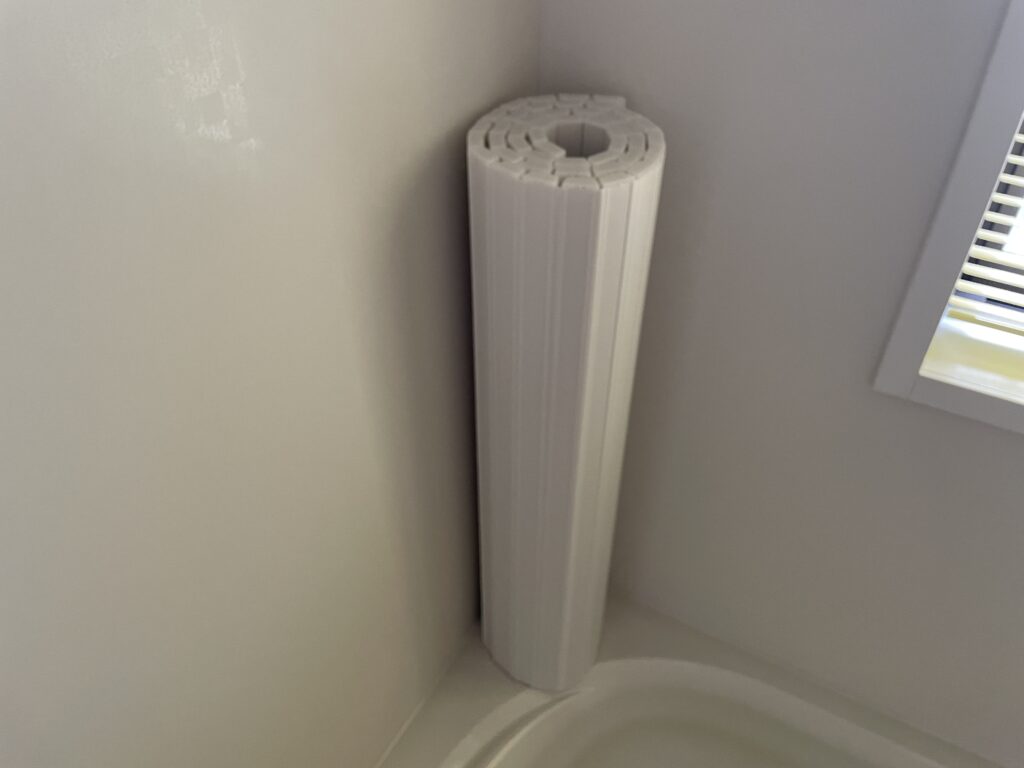 その状態で立てて、浴槽上面の角の所におくと、邪魔になりません。