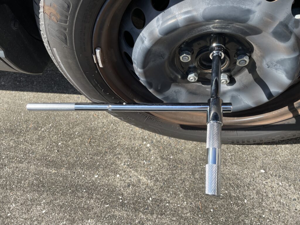 使ってみると、レンチの上に乗らなくても、腕の力でホイールナットを緩めることができました。