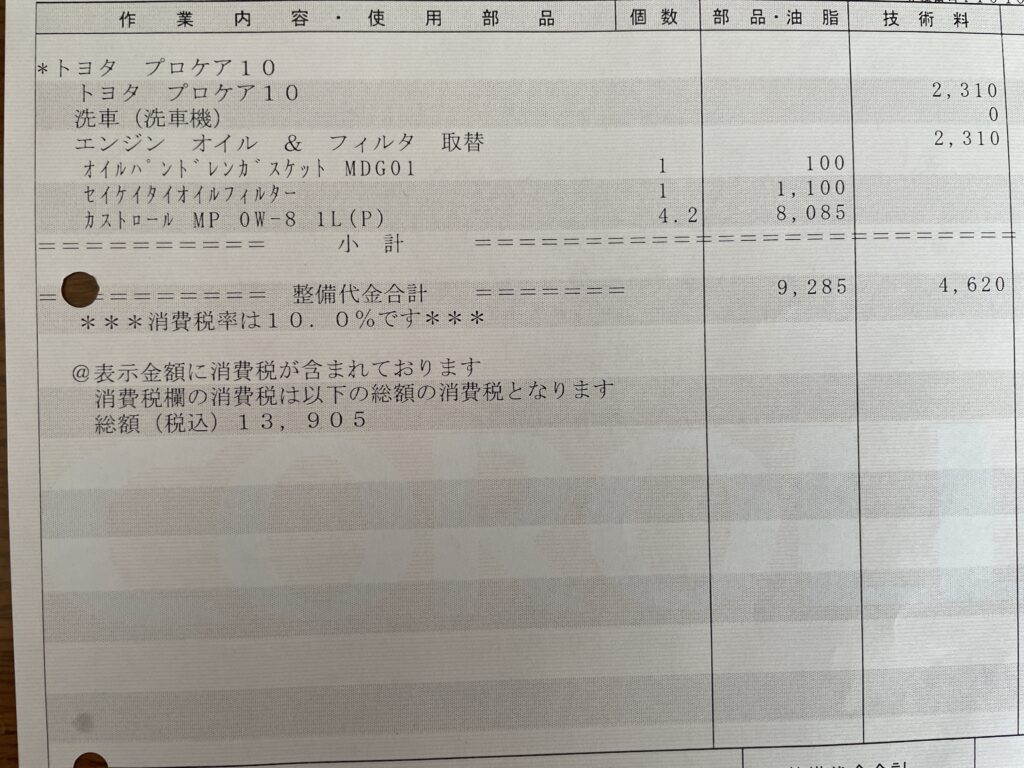 エンジンオイルは、ディーラーでカストロールが標準で使用されているので、割高だと思います。