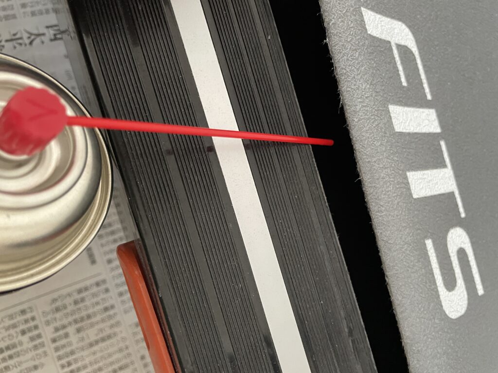 2回目からは、シリコンスプレーが、周辺に飛び散らないように、新聞紙で養生してから作業しています。