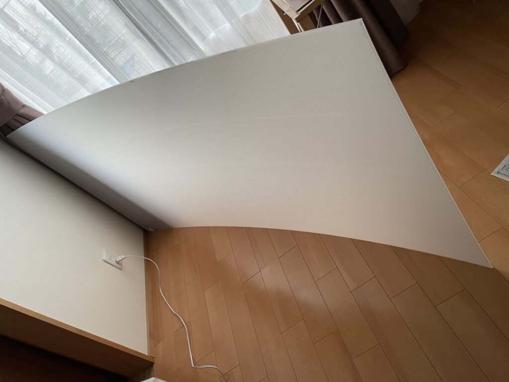 片方だけ、カッターで切ると、テープを使うことなく直角に曲げることができます。