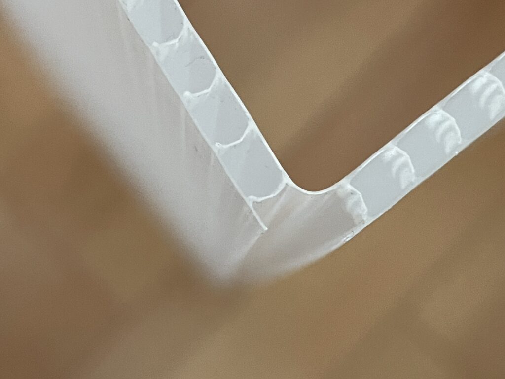 素材の寸法取りに余裕があれば、底面と側面を一体で切り出し、プラダンのパイプ状部分の