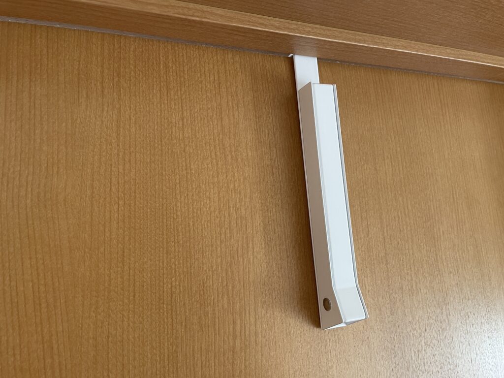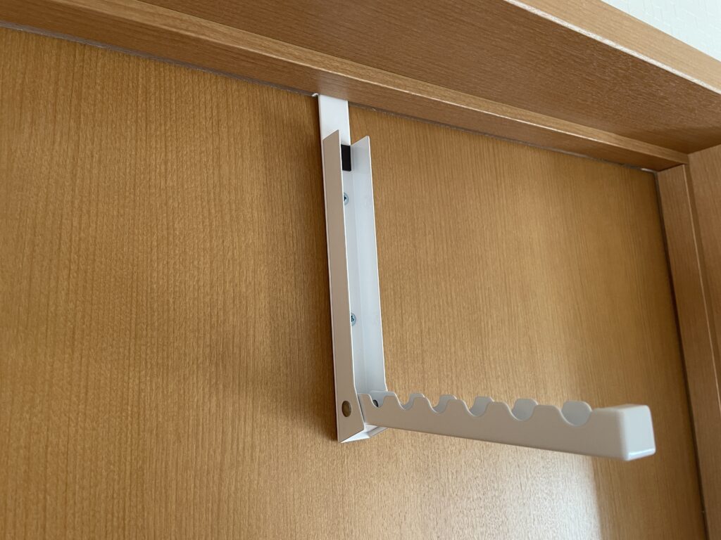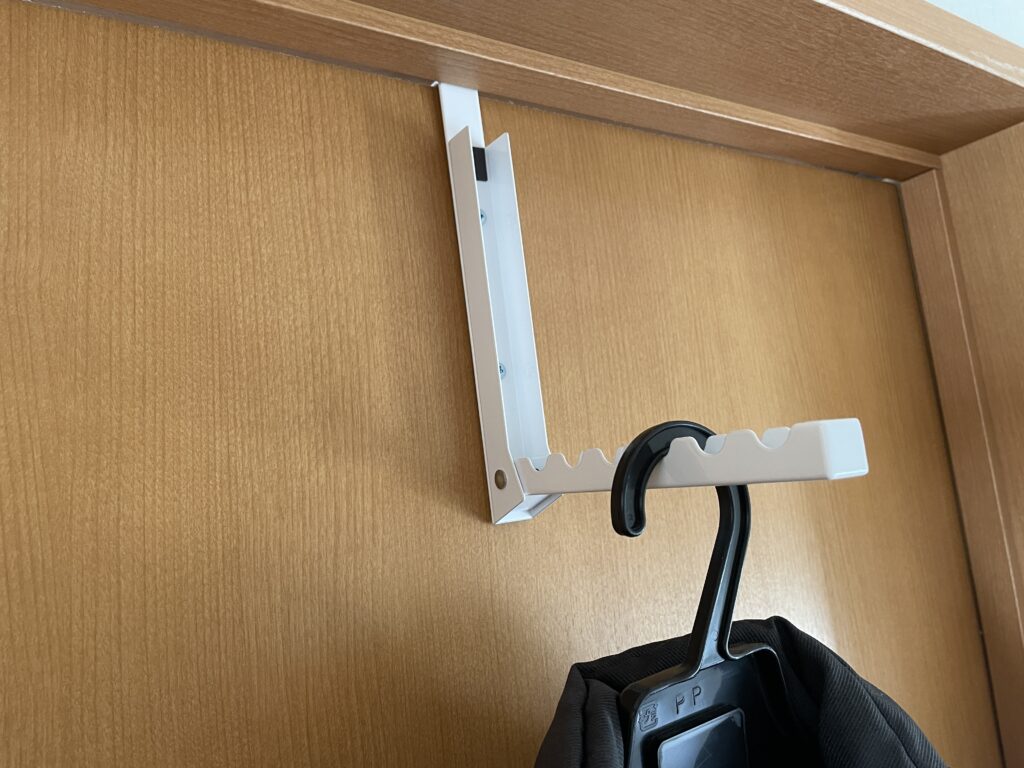 今までは、ドア枠の狭い段差にハンガーを引っ掛けていましたが、ちょっとしたことで、落下したり、ストレスの一因になっていました。