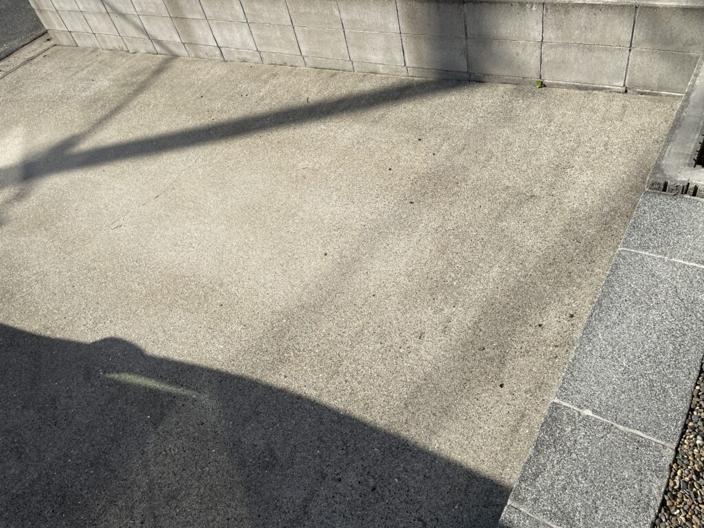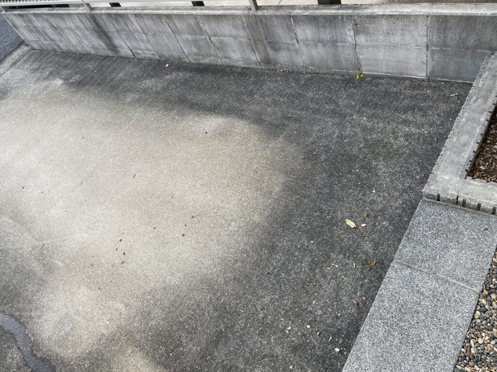 玄関ポーチ、駐車場、ブロック塀などが、だんだんと黒ずんで汚れてきます。